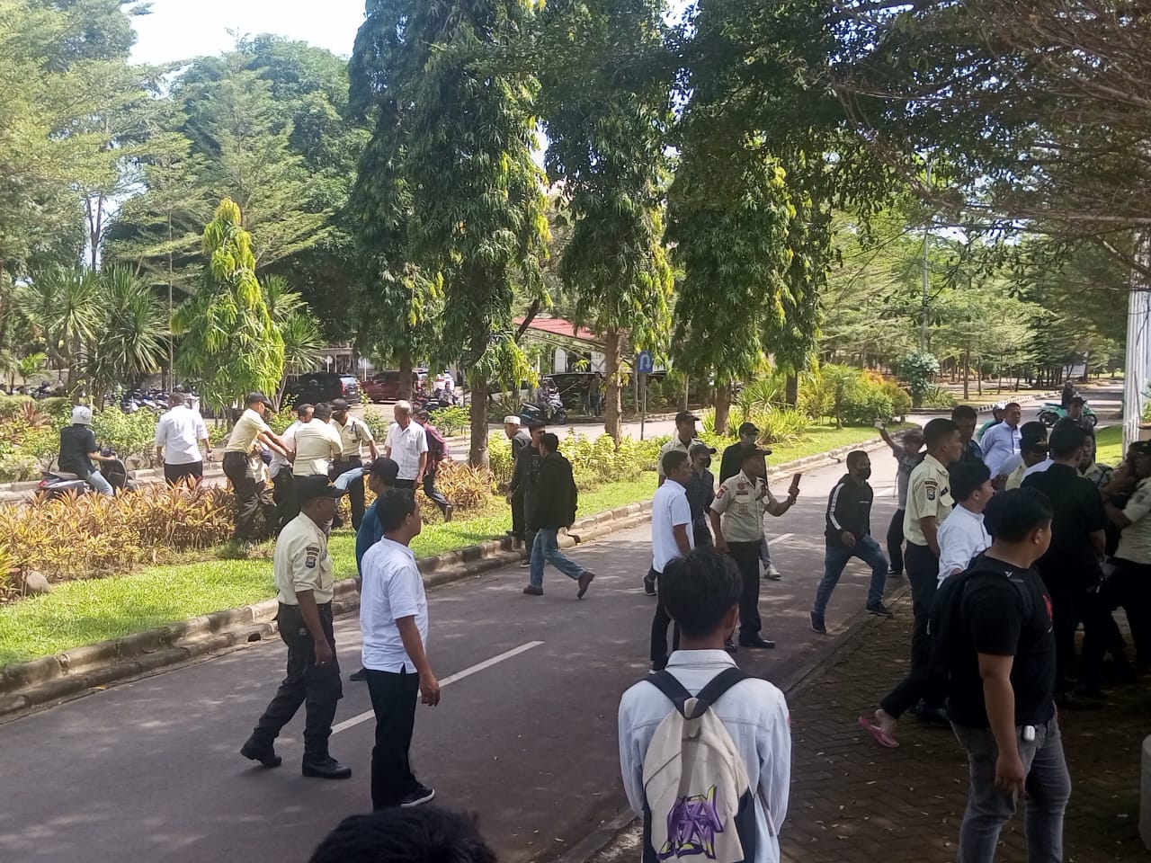 F, salah satu, massa aksi, mengungkapkan bahwa unjuk rasa tersebut pada awalnya berjalan dengan damai, namun pada pertengahan aksi para mahasiswa memanas dan berujung bentrokan dengan pihak keamanan kampus.