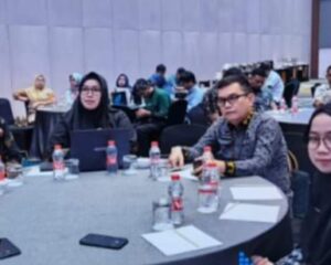 LUWU TIMUR, SUARATERKININEWS.COM- Kepala Dinas Kominfo-SP Lutim, H. Hamris Darwis didampingi Kepala Bidang IKP dan Kehumasan, Hayati Ilyas beserta staf menghadiri Rakor Kehumasan, di ruangan