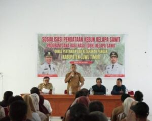 LUWU TIMUR, SUARATERKININEWS.COM- Pemerintah Kabupaten Luwu Timur melalui Dinas Pertanian dan Ketahanan Pangan (DPKP), melaksanakan Sosialisasi Pendataan Kebun Sawit Program Dana Bagi Hasil (DBH) Kelapa