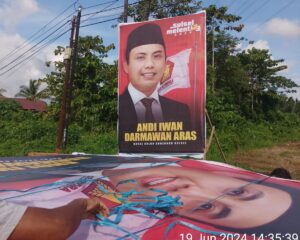 LUTIM, SUARATERKININEWS.COM-Pemasangan atribut Andi Iwan Darmawan Aras (AIA) bakal calon gubernur Sulawesi Selatan yang dimotori Alfred selaku tim relawan di Kabupaten Luwu Timur memberi warna