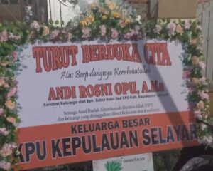 SELAYAR, SUARATERKININEWS.COM- Karangan bunga ucapan duka mewarnai rumah duka sekaligus tempat kejadian peristiwa (TKP) kebakaran naas yang merenggut nyawa almarhumah, Andi Rosni Opu (56 tahun).