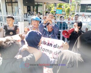 MAKASSAR, SUARATERKININEWS.COM – Gerakan Rakyat dan Mahasiswa Indonesia (Gerak Misi) menggelar aksi unjuk rasa di depan Pertamina Regional VII Kota Makassar, Sulawesi Selatan pada Jumat