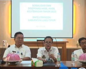 LUTIM, SUARATERKININEWS.COM-Pemerintah Kabupaten Luwu Timur (Lutim) melalui Badan Penelitian dan Pengembangan Daerah (Bapelitbangda) menggelar sosialisasi dan diseminasi hasil Kajian tahun 2023. Dalam rangka pengembangan hasil-hasil