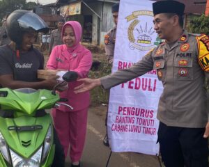 LUTIM,SUARATERKININEWS.COM – Kegiatan Pembagian Takjil oleh Personil Polsek Wasuponda dan Bhayangkari Ranting Polsek Wasuponda Cabang Luwu Timur Dalam Rangka Bulan Suci Rhamadan 1445 H/ 2024