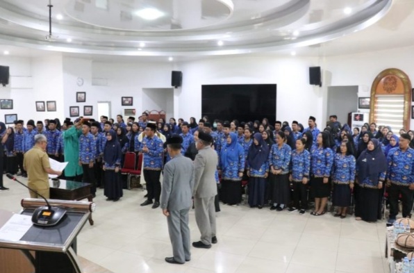 Bupati Luwu Timur, H. Budiman mengucapkan selamat kepada 162 ASN yang baru saja diambil sumpah/janjinya.