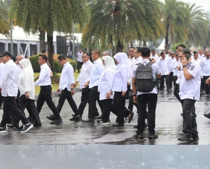 LUWU TIMUR, SUARATERKININEWS.COM- Bupati dan Wakil Bupati terpilih Luwu Timur, Ir. H. Irwan Bachri Syam dan Dra. Hj. Puspawati Husler, menunjukkan semangat luar biasa saat mengikuti gladi bersih pelantikan kepala daerah di kawasan Monumen Nasional (Monas), Jakarta, Rabu (19/02/2025) pagi.
