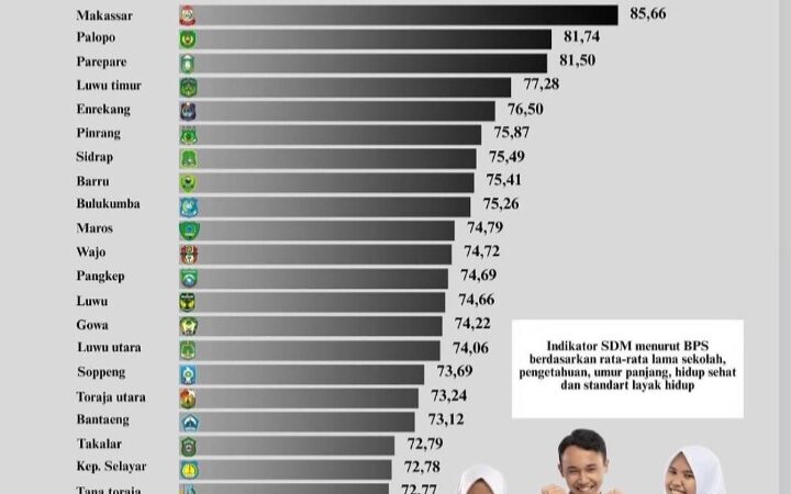 LUWU TIMUR, SUARATERKININEWS.COM,- Kabupaten Luwu Timur berhasil menduduki posisi ke empat sebagai daerah dengan Sumber Daya Manusia (SDM) tertinggi di Provinsi Sulawesi Selatan berdasarkan Indeks Pembangunan Manusia (IPM) yang di rilis resmi oleh Badan Pusat Statistik (BPS) tahun 2025.