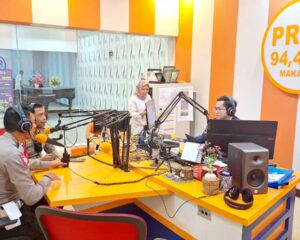 Makassar, SUARATERKININEWS.COM – Kasat Lantas Polres Pelabuhan Makassar, AKP Sarifuddin SH.MH, melakukan Talk show di Radio Pro 1, 94.4 FM Makassar, untuk Sosialisasikan Kamseltibcar Kepada