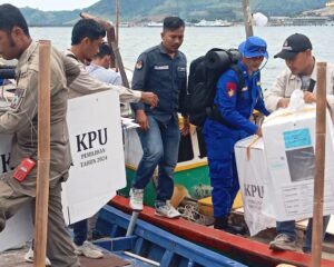 LAMPUNG SELATAN, SUARATERKININEWS.COM- Logistik Pilkada Serentak 2024 dari PPK Ketapang ke Pulau Rimau Balak, Desa Sumur, Kecamatan Ketapang dikawal ketat oleh kepolisian. Proses distribusi dilakukan