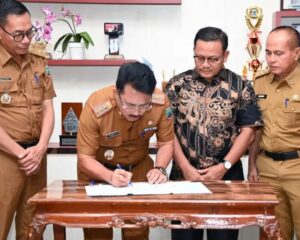 LAMPUNG SELATAN, SUARATERKININEWS.COM- Pemerintah Kabupaten (Pemkab) Lampung Selatan melaksanakan penandatanganan kerja sama dengan PT Eljhon Tirta Jasa Emas Wisata, terkait perjanjian Kerja Sama Pemanfaatan (KSP)