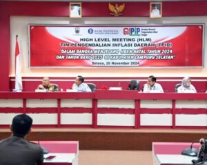 LAMPUNG SELATAN, SUARATERKININEWS.COM- Pengendali Inflasi Daerah (TPID) Kabupaten Lampung Selatan menggelar High Level Meeting (HLM) di Aula Rajabasa, kantor bupati setempat, Selasa (26/11/2024). Rapat yang