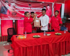 LUTRA, SUARATERKININEWS.COM- Pengambilan formulir pendaftaran bakal calon Bupati Luwu Utara di sekretariat PDIP, Drs. Basir di terima langsung oleh Ketua PDIP Luwu Utara Mahfud Sidik,