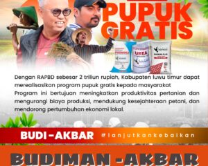 LUWU TIMUR, SUARATERKININEWS.COM- Program pupuk gratis yang direncanakan oleh Bupati Luwu Timur, H. Budiman, mendapat apresiasi positif dari para petani di Desa Pattengko, Kecamatan Tomoni