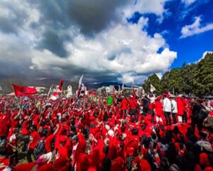 LUWU TIMUR, SUARATERKININEWS.COM- Ribuan massa pendukung IBAS-PUSPA, tumpah ruah saat Deklarasi Calon Bupati dan Wakil Bupati Luwu Timur 2024, di Lapangan Mardeka Puncak Indah Malili.