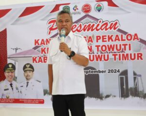 LUWU TIMUR, SUARATERKININEWS.COM- Bupati Luwu Timur, H. Budiman, didampingi Kepala Desa Pekaloa, Edy Denda meresmikan Kantor Desa Pekaloa Kecamatan Towuti yang ditandai dengan penandatanganan prasasti