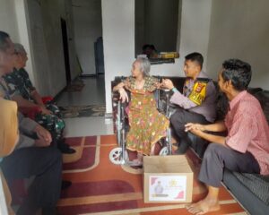 LUWU TIMUR, SUARATERKININEWS.COM- Kapolres Luwu Timur AKBP Zulkarnain SH.S.IK.MH, bersama Jajaran, memberikan kursi roda kepada Warakawuri lansia Nurhayati (91) warga Desa lampenai, Kecamatan Wotu, Kabupaten