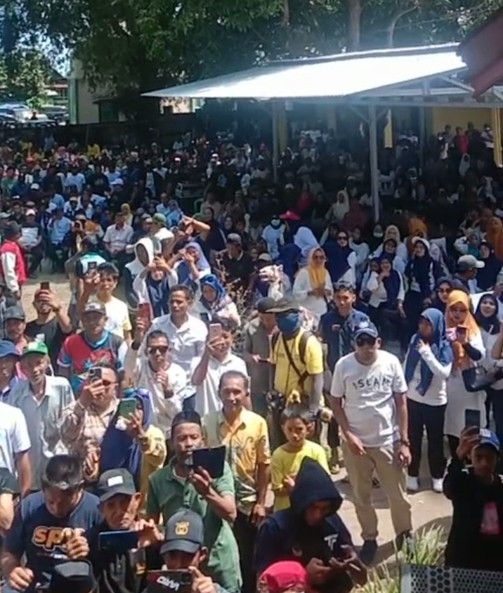 Paslon PASMI dengan memakai baju putih yang di usung dari partai Nasdem,, Golkar,,Perindo,,PSI,, Buruh,, terlihat begitu semangat tidak hentinya bersorak dengan sorakan PASMI DIHATI,,PASMI menang,, Jeneponto Bahagia.