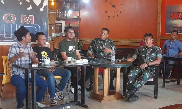 LUWU TIMUR, SUARATERKININEWS.COM- Dandim Palopo 1403, Letkol Arm Kabit Bintoro Priyambodo, S.IP menggelar ngopi bareng bersama awak media luwu timur, bahasa Pilkada damai, di Warkop Punggawa Malili, Selasa (06/08/2024).