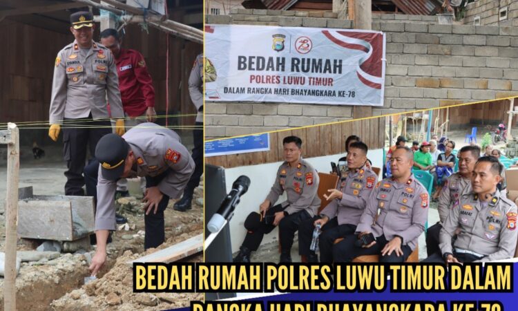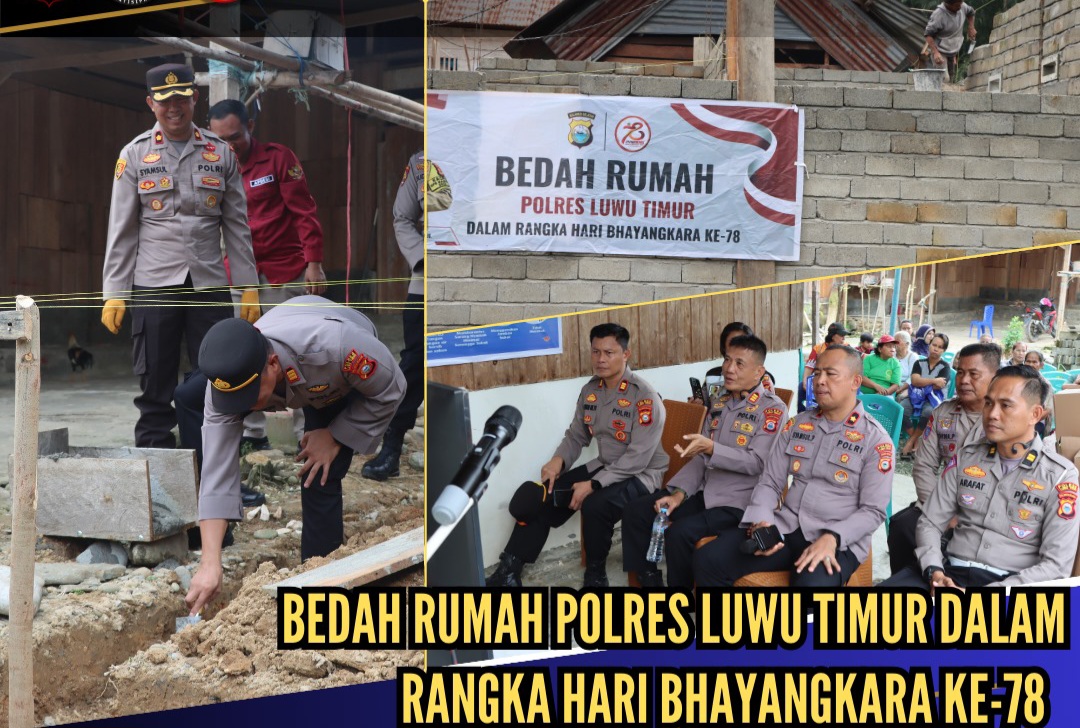 Kapolres Lutim AKBP Zulkarnain SH.S.IK.MH, yang diwakili Waka Polres Kompol Syamsu P, S.Sos, MM, mengatakan ini rangkaian peringatan HUT Bhayangkara yang ke-78 kita menggelar bakti sosial, kita bedah 2 rumah warga yang ada di wilayah hukum kami.