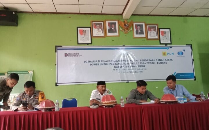 Sosialisasi Pelaksanaan Inventarisasi Pengadaan Tanah Tapak Tower Untuk Pembangunan CUTET 275 kV, Wotu-Bungku, PT PLN (Persero) ULP Sulawesi, UPP Sulawesi Selatan, yang di gelar diaula kantor Desa Kawata, Kecamatan Wasuponda,Kabupaten Luwu Timur, Rabu 2 Jali 2025.