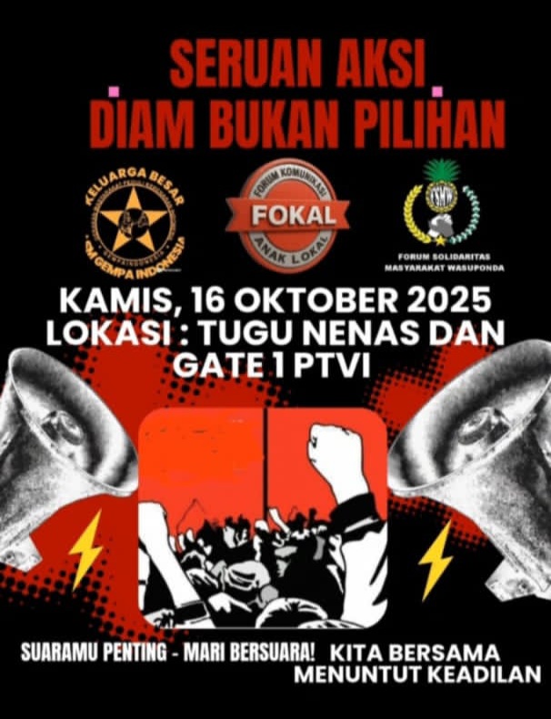 LUWU TIMUR, SUARATERKININEWS.COM- Selasa 14 Oktober 2025 Jaringan Koalisi Aktivis Masyarakat Lingkar Tambang Luwu Timur (JAKAM Lutim) menyatakan dukungan penuh terhadap Seruan Aksi Akbar yang di pelopori oleh 3 Oraganisasi lokal kecamatan wosuponda (LSM Gempa,Fokal Wosuponda, dan FSM Wosuponda yang akan digelar Kamis, 16 Oktober, di Tugu Nanas dan Gate 1 PT Vale Indonesia Tbk.