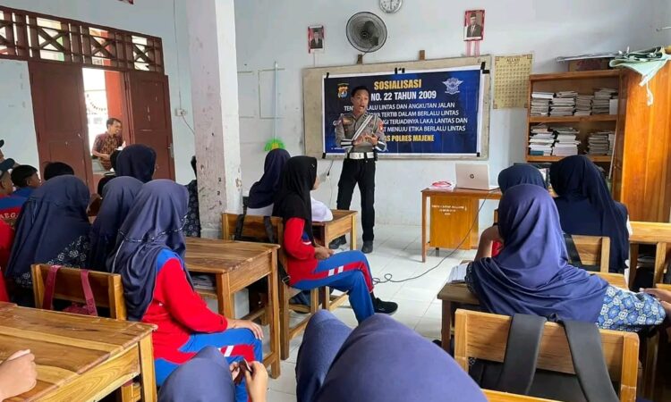 MAJENE, SUARATERKININEWS.COM – Satuan Lalu Lintas Polres Majene melalui Unit Kamseltibcarlantas yang dipimpin oleh Bripda Zul Fadli Pendi, kembali melaksanakan sosialisasi dan edukasi tentang Undang-Undang No. 22 Tahun 2009 tentang Lalu Lintas dan Angkutan Jalan (LLAJ) kepada siswa-siswi SMPN 7 Satap Majene.