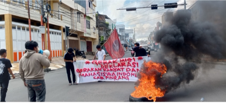 Pinrang, Suaraterkininews.com – Puluhan aktivis mahasiswa yang tergabung dalam Gerakan Rakyat dan Mahasiswa Indonesia (Gerak Misi) menggelar aksi unjuk rasa di perempatan pusat kota Kabupaten Pinrang, Kamis, 10/4/2025.