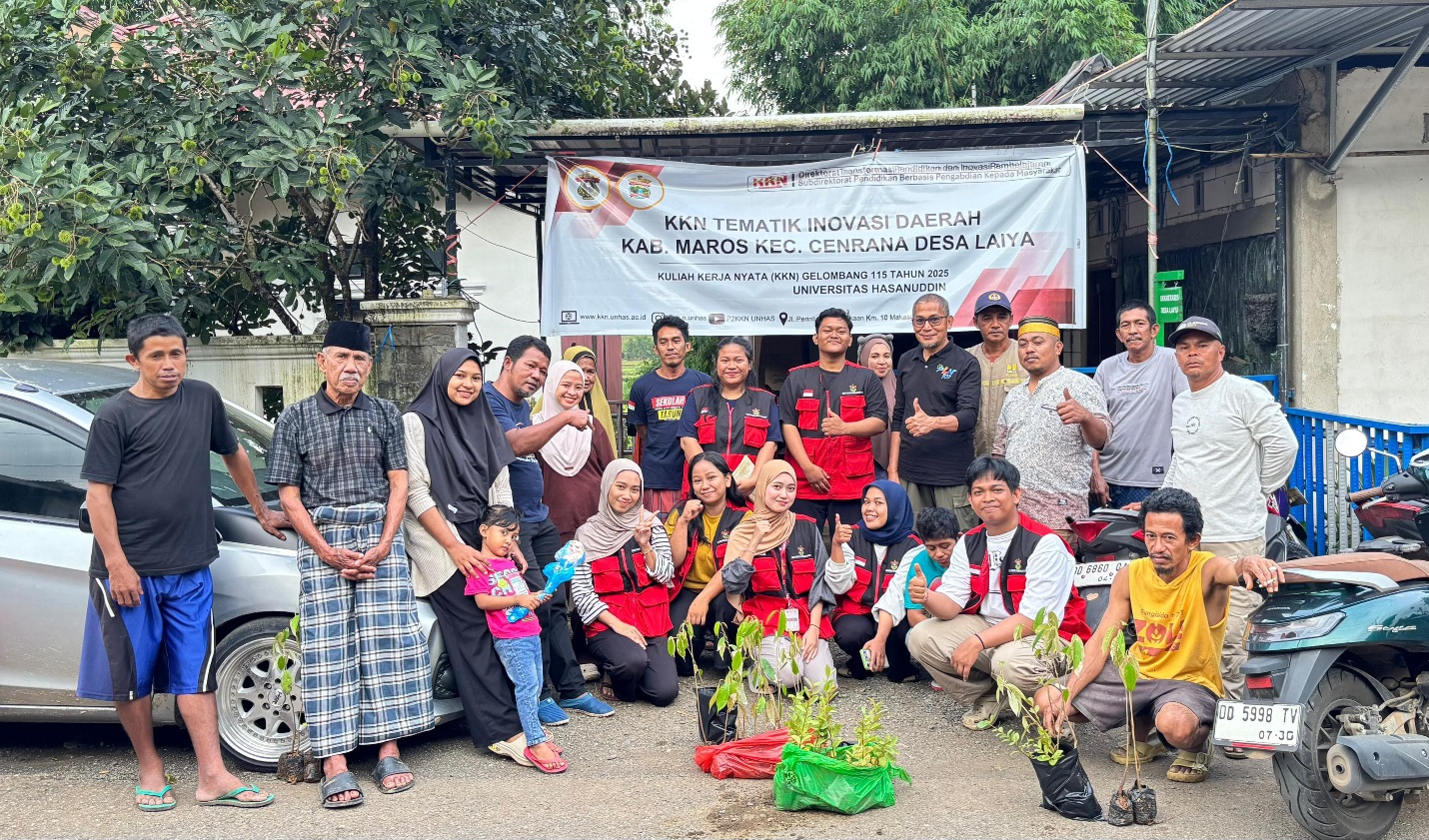 MAROS, SUARATERKININEWS.COM- Mahasiswa kkn unhas gelombang 115 melakukan kegiatan pembagian bibit pohon di Desa Laiya, kabupaten Maros. Kegiatan pembagian bibit pohon ini merupakan salah satu program kerja mahasiswa kuliah kerja nyata (KKN) yang berfokus pada upaya pelestarian lingkungan sekaligus penguatan potensi ekonomi masyarakat desa.