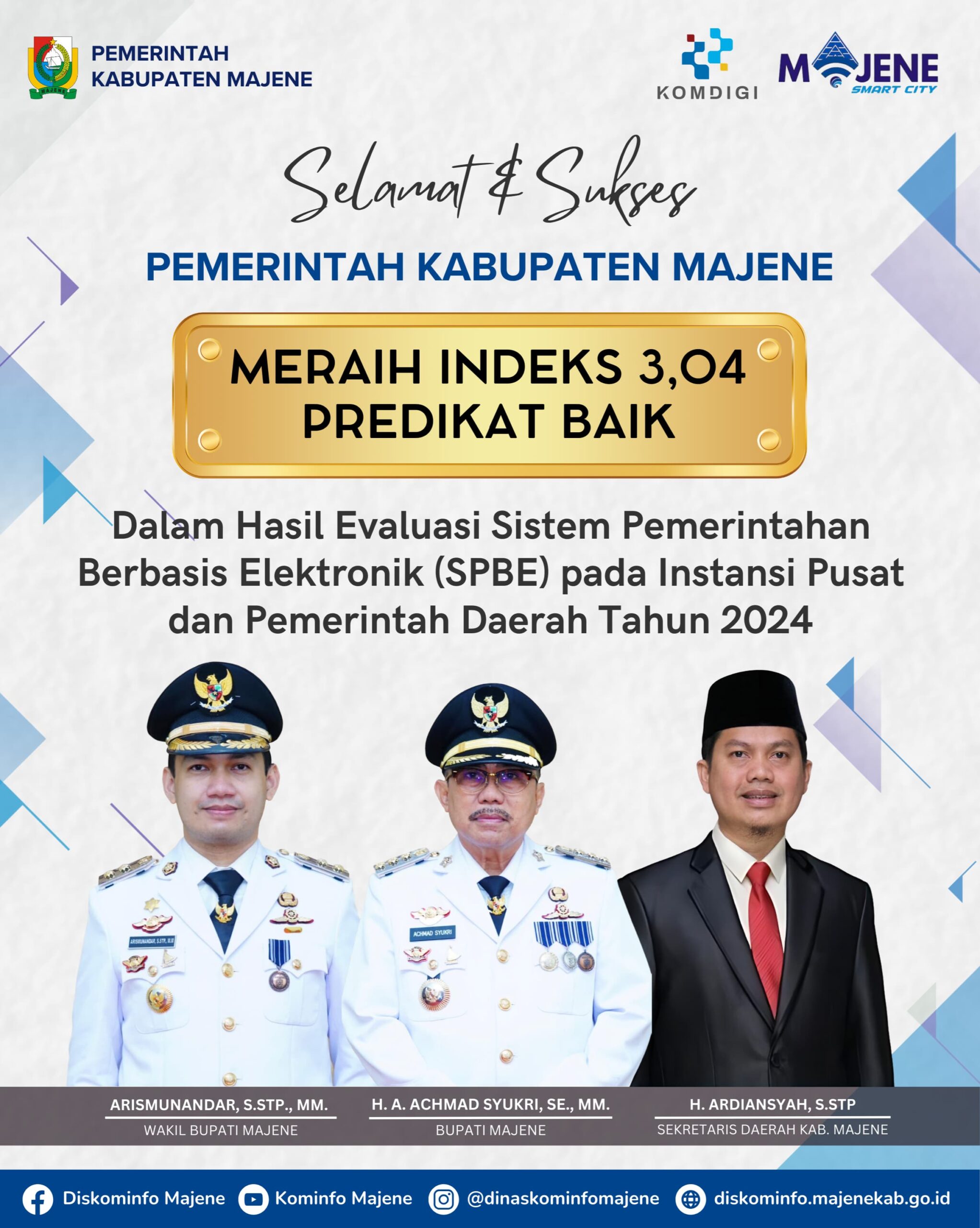 MAJENE, SUARATERKININEWS.COM- Kepala Dinas Komunikasi Informatika Statistik dan Pesandian Kabupaten MAJENE memberikan tanggapan atas prestasi kabupaten yang meraih nilai baik dalam Sistem Pemerintahan Berbasis Elektronik (SPBE) tahun 2024.