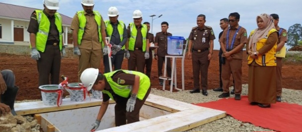 Kepala Kejaksaan Tinggi Sulawesi Selatan Agus Sali.SH.MH, meletakkan Batu pertama pembangunan kantor baru Kejaksaan Negeri Luwu Timur, Senin 20/05/2024.