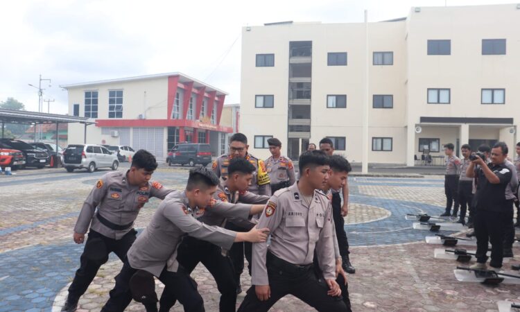 Kapolres AKBP Yusriandi Yusrin memberikan contoh langsung dalam latihan tersebut. Ia memperagakan kuda-kuda sempurna, menunjukkan bahwa postur yang benar akan menghasilkan formasi yang kuat.