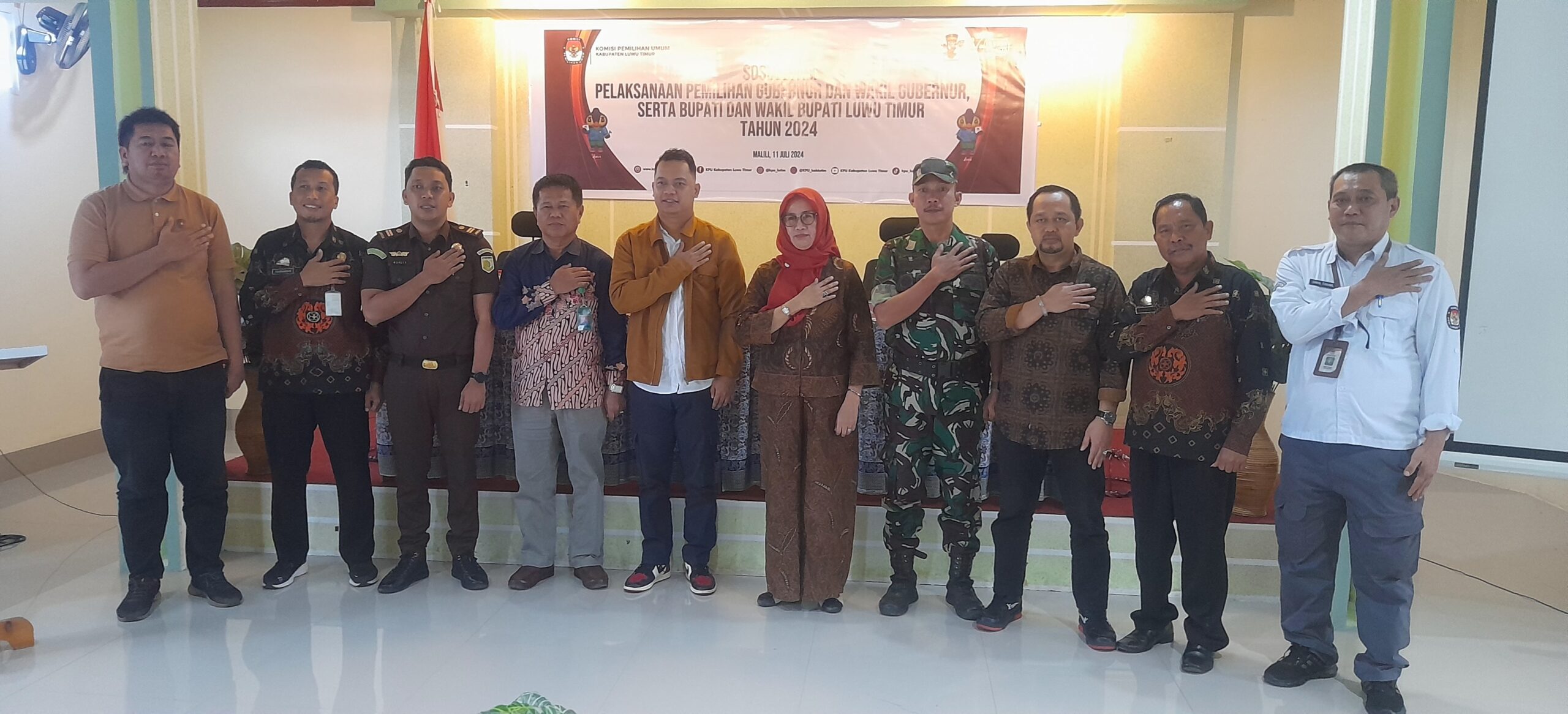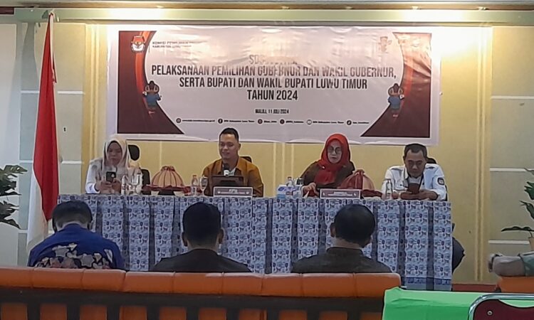 LUTIM, SUARATERKININEWS.COM- Sosialisasi yang digelar Komisi Pemilihan Umum Daerah (KPUD) Luwu Timur terkait Pelaksanaan pemilihan Gubernur, wakil gubernur, Bupati dan Wakil bupati Luwu Timur 2024 bertempat di hotel I Lagaligo malili, Kamis (11/07/2024).