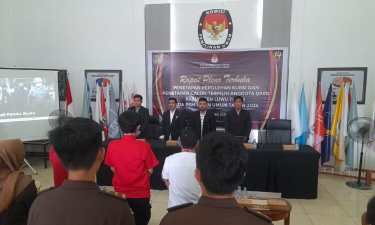 LUTIM, SUARATERKININEWS.COM- KPU Luwu Timur Gelar Rapat Pleno Terbuka Penetapan perolehan kursi dan Penetapan calon terpilih anggota DPRD Kabupaten Luwu Timur pada pemilihan umum tahun 2024, Kamis 02/05/2024.