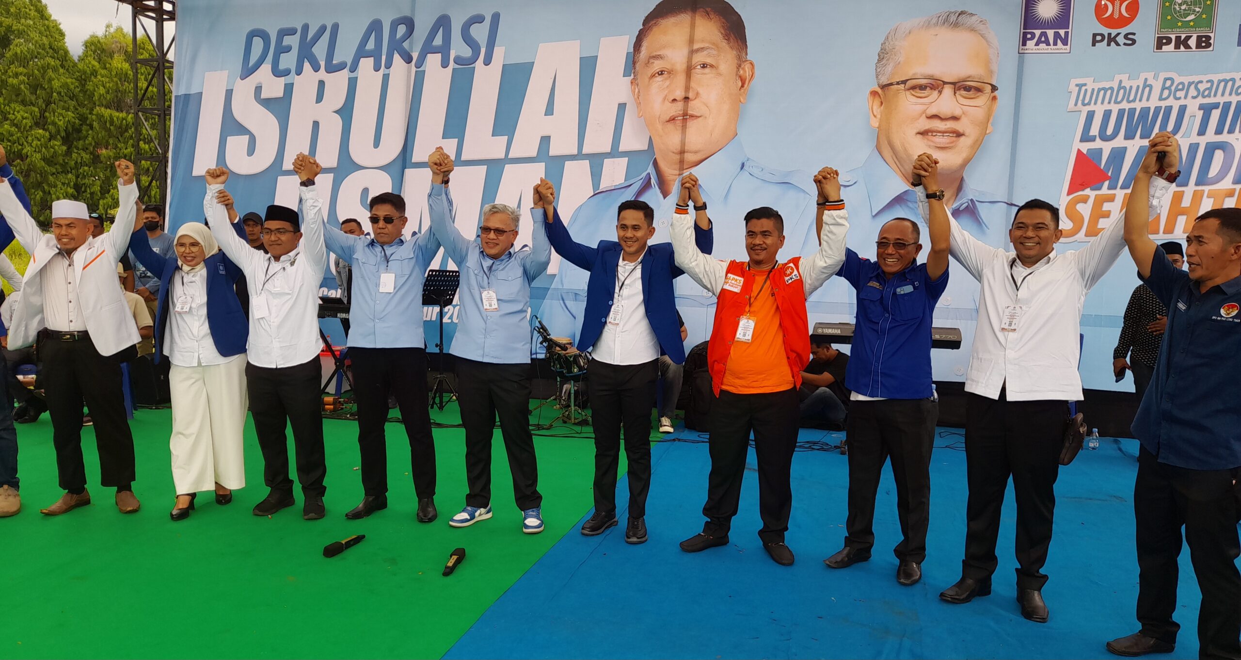 “Lapangan Sport Center Malili hingga jalan penuh massa pendukung (BERIMAN) dan Deklarasi ini dimeriahkan oleh artisi ibu kota Duo Anggrek”.