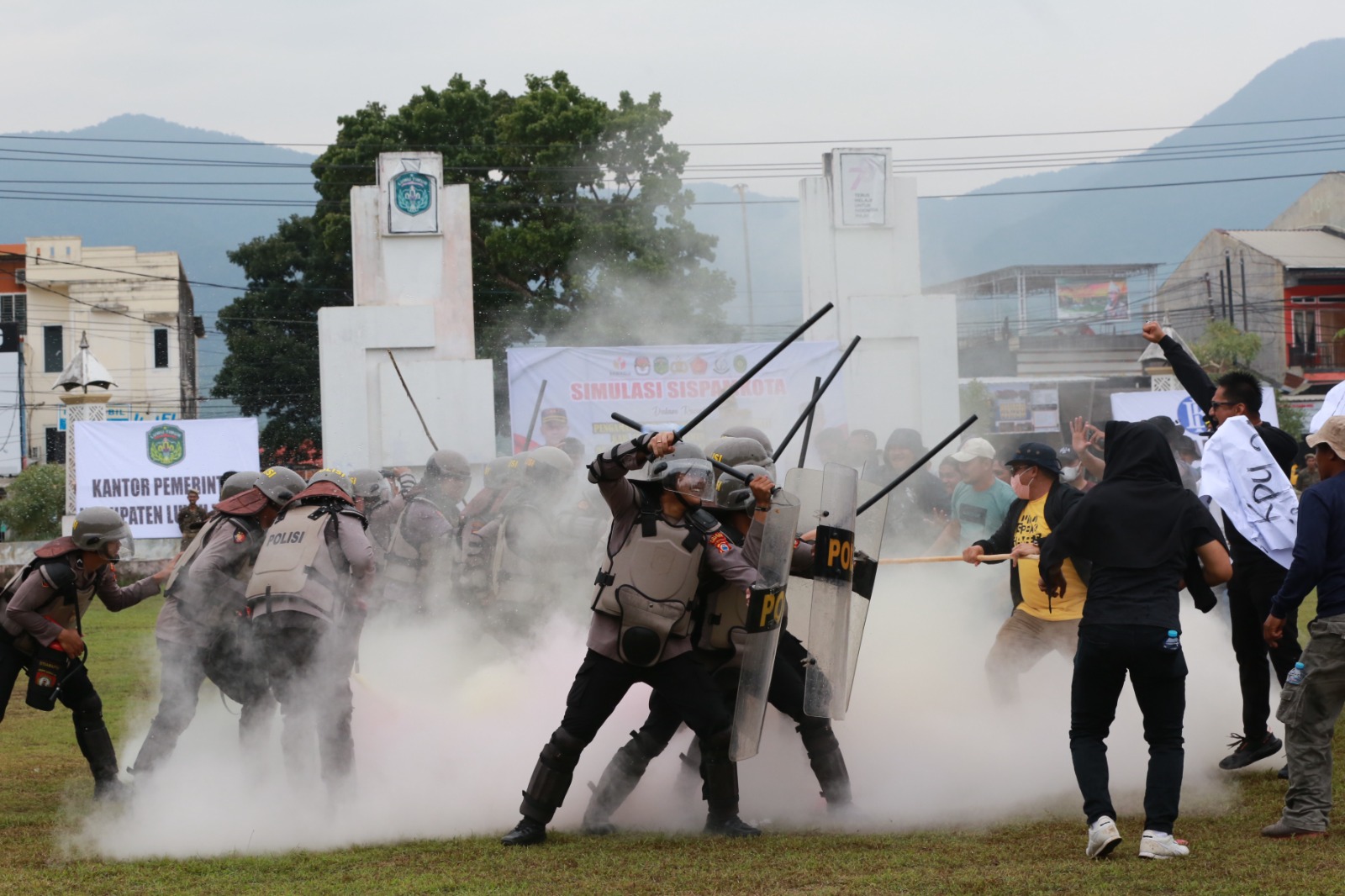 Kapolres Luwu Timur AKBP Zulkarnain SH.S.IK.MH, mengatakan simulasi Sistem Pengamanan Kota (Sispamkota) dipersiapkan untuk pengamanan pelaksanaan Pemilu 2024, yang bertujuan melatih kesiapan dan kemampuan para personel dalam melaksanakan tugas pengamanan pemilu.