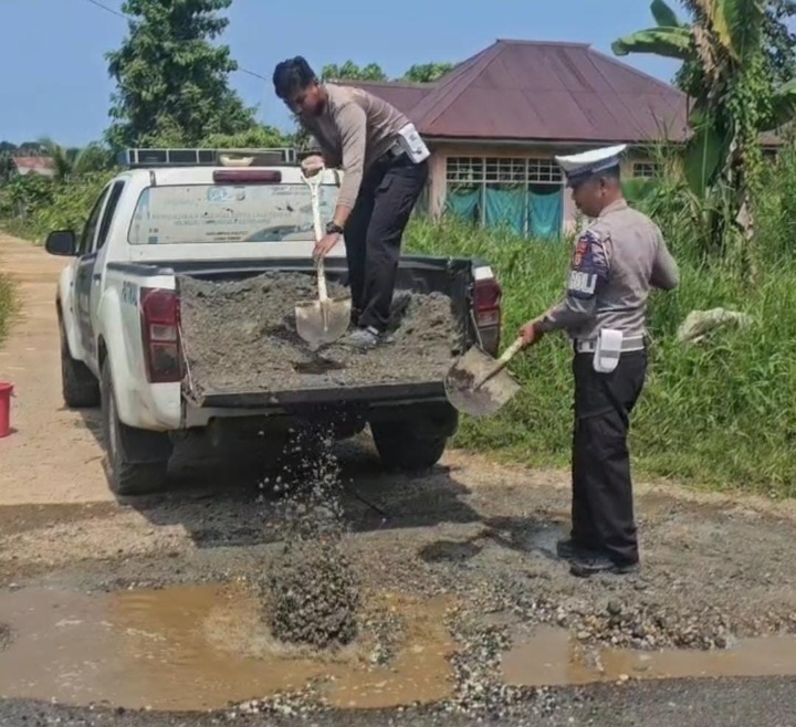 “Ini menjadi bagian dari upaya pencegahan kecelakaan lalu lintas yang sering kali disebabkan oleh kondisi jalan yang tidak layak,” kata Bripka Andi Muh. Taufik.
