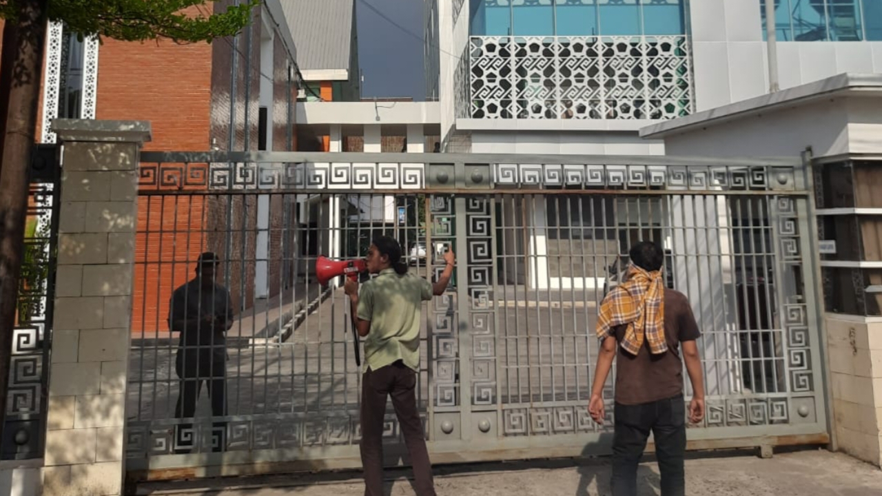 Pengunjuk rasa meminta agar Kakanwil Kemenag Sulsel segera dicopot atas dugaan keterlibatan dalam proses transaksi di lembaga pendidikan Kanwil Kemenag Provinsi Sulawesi Selatan.