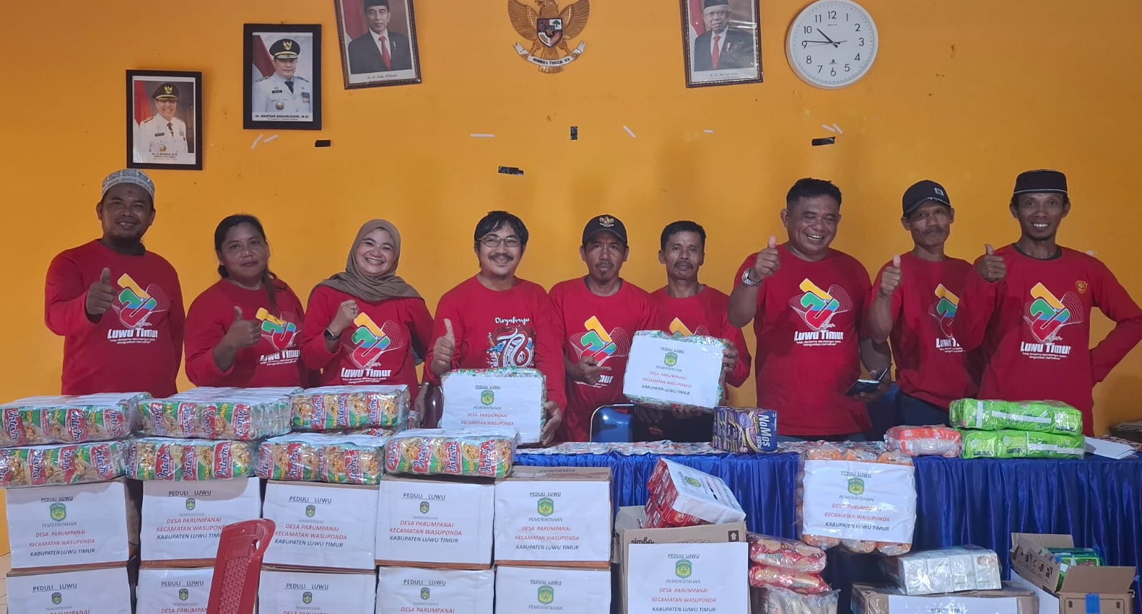 Bantuan yang sudah dikumpulkan sebahagian kami serahkan ke kecamatan Wasuponda untuk disalurkan ke saudara-saudara kita di Luwu, Kata pak desa.