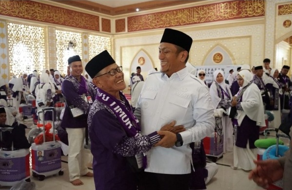 LUWU TIMUR, SUARATERKININEWS.COM- Bupati Luwu Timur, H. Irwan Bachri Syam secara resmi melepas Jamaah Calon Haji (JCH) yang akan berangkat ke Tanah Suci pada musim haji tahun 1446 Hijriah/2025 Masehi.