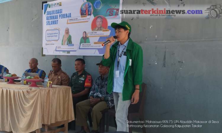 TAKALAR, SUARATERKININEWS.COM- Mahasiswa Kuliah Kerja Nyata (KKN) angkatan 75, Posko 7 Desa Pattinoang, Universitas Islam Negeri (UIN) Alauddin Makassar menggelar kegiatan sosialisasi dengan tema “Pentingnya APD (Alat Pelindung Diri) dalam Bekerja” di Balai Desa Pattinoang, Kecamatan Galesong, Kabupaten Takalar. Pada Selasa 13/8/2024.