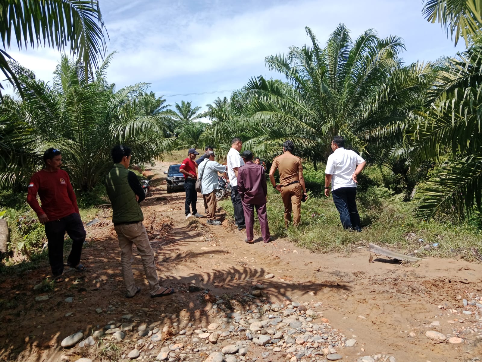 Selepas musyawarah, pihak perusahaan PTPN KSO Luwu 1 Burau bersama aparat Desa Lagego meninjau langsung lokasi tanggul perkebunan milik PTPN yang jebol serta cekdam milik desa.