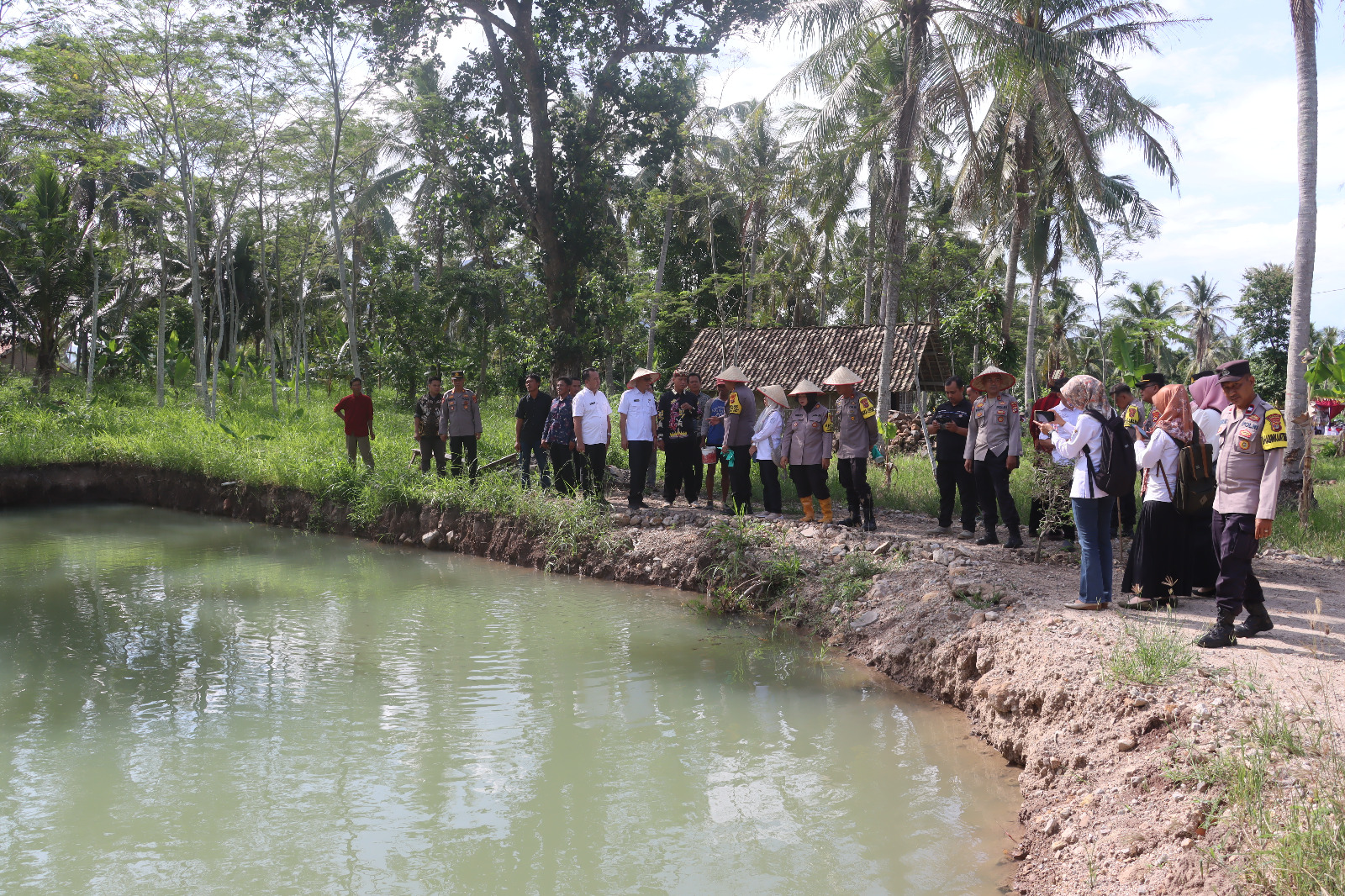 Selain itu, Kapolres juga mengunjungi kolam ikan di lokasi tersebut. Dalam kunjungannya, ia mengecek kondisi kolam dan memberikan makan ikan, menunjukkan perhatian terhadap sektor perikanan yang menjadi bagian penting dari ketahanan pangan lokal.