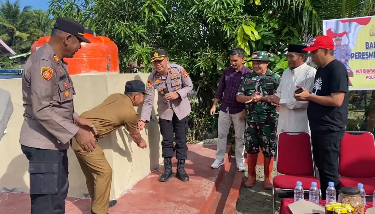 LUTIM, SUARATERKININEWS.COM- Polres Luwu Timur salurkan bantuan pengadaan sumur Bor untuk warga kurang mampu atas nama Asnawi (56) dalam rangka Hari Ulang Tahun (HUT) Bhayangkara ke 78 tahun 2024 di Dusun Sejahtera, Desa Lera, Wotu, Selasa (25/06/24).