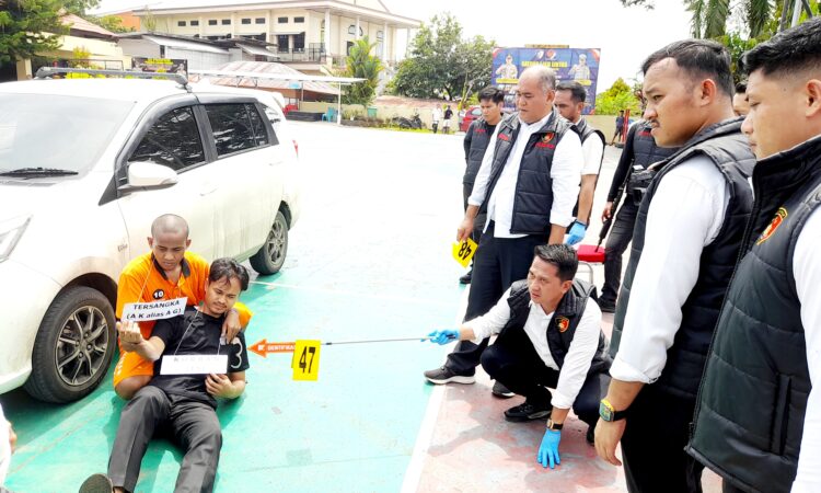 Tersangka pembunuhan bernama Akmal alias Adi alias sampe dan 7 orang saksi dihadirkan dalam rekonstruksi pembunuhan tersebut.