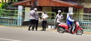Ipda Mardiana M, SH dan personil Polwan Polres Luwu Timur membagikan beras ke tukang ojek yang melintas, ini adalah salah satu bentuk kepedulian Polri ke masyarakat.