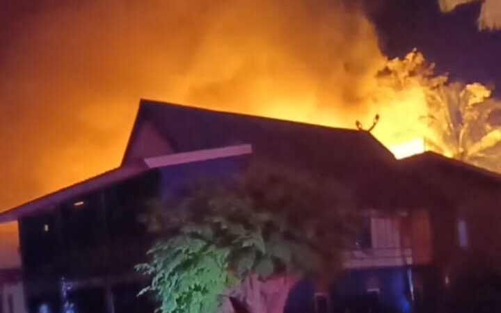 Akibat kebakaran yang terjadi pada sekira pukul 20.30 Wita, hari, Sabtu, (18/5) tersebut, satu unit bangunan rumah panggung habis dilalap si jago merah.