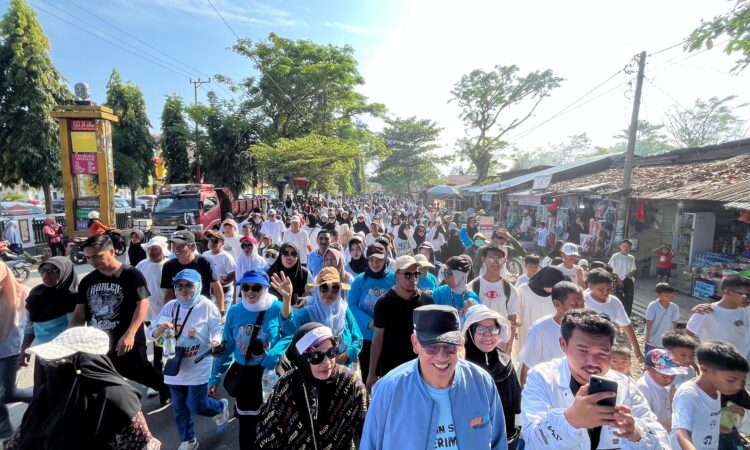 Ada ribuan warga yang hadir dalam kegiatan bertema Jalan Santai Bersama Isrullah-Usman dengan doorprize paket umroh dan hadiah menarik lainnya.