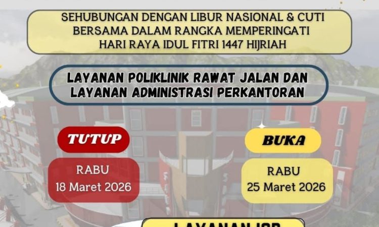 Kebijakan ini diambil sebagai bagian dari penyesuaian operasional selama masa libur panjang, sekaligus memberikan kesempatan bagi tenaga kesehatan dan staf untuk merayakan Idul Fitri bersama keluarga.