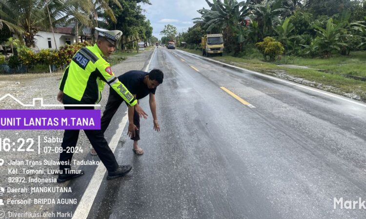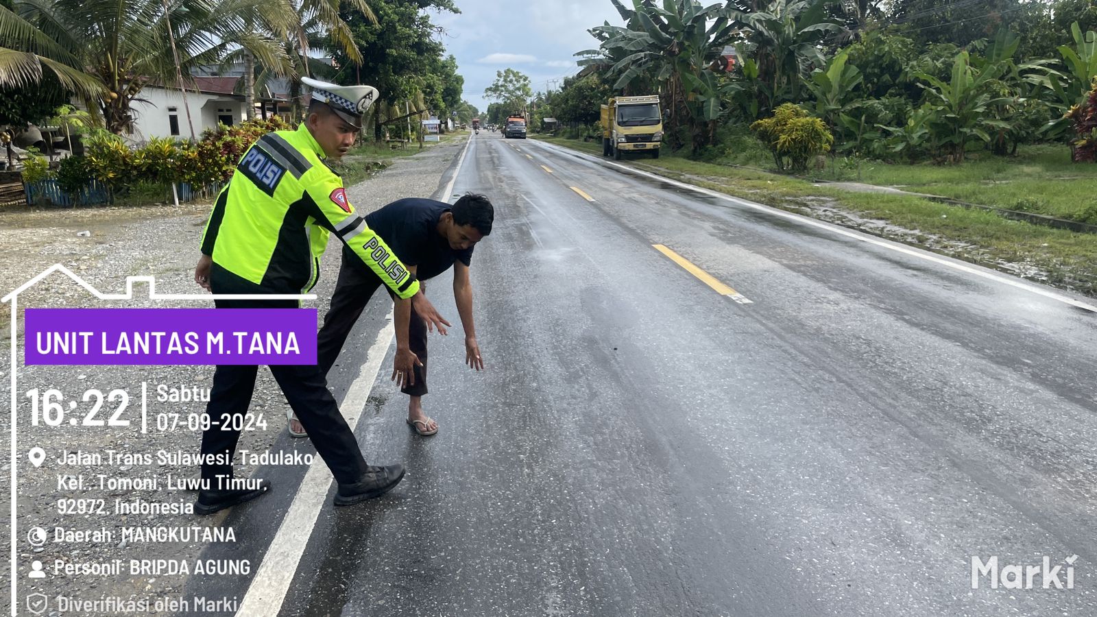 LUWU TIMUR, SUARATERKININEWS.COM- Kecelakaan lalu-lintas itu melibatkan satu unit mobil yang belum diketahui jenisnya menabrak satu unit motor Yamaha Aerox, dijalan poros trans, Desa Tadulako, Kecamatan Tomoni, Kabupaten Luwu Timur, Sabtu (07/09/2024).