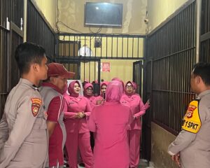 LUWU TIMUR, SUARATERKININEWS.COM- Ketua Bhayangkari Cabang Luwu Timur Ny. Ayu Zulkarnain bersama anggota didampingi kasat tahti Iptu Muh. Junus dan Kanit 1 SPKT Ipda Sandi